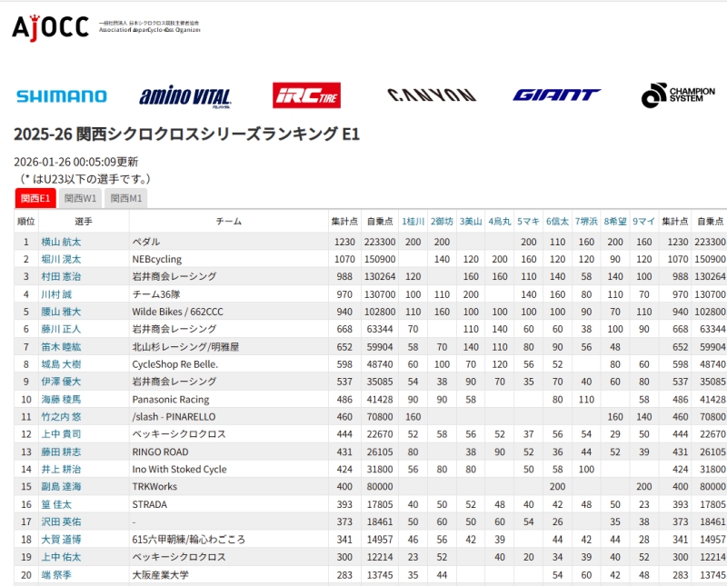 関西シクロクロスシリーズチャンプ2連覇には最終戦を残して王手をかけている状況です。